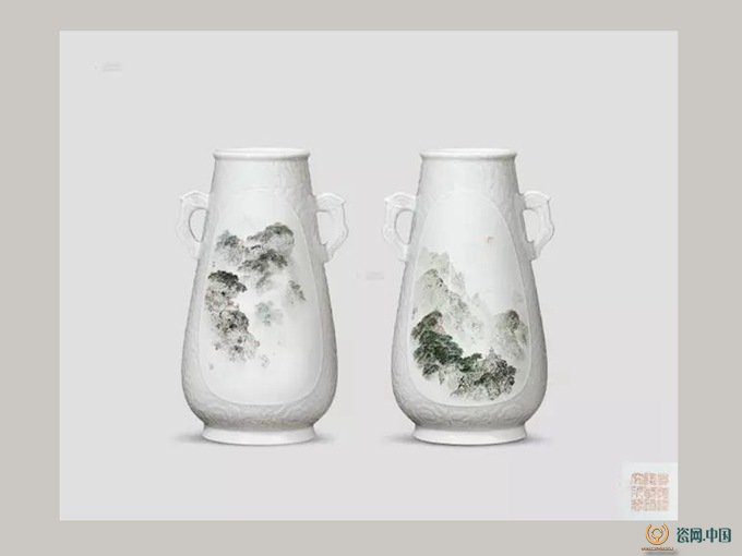 王锡良沿着珠山八友这一路,对传统彩绘作出了重大改造,不再是工整繁复,也不再重填彩、重工笔,让色彩铺罩整个器皿,而是兼工带写,重构图,重水墨效果,将宣纸上传统的皴擦、勾勒的技法运用进来,使粉彩彻底脱离了宫廷富贵气,走向了寻常百姓家。