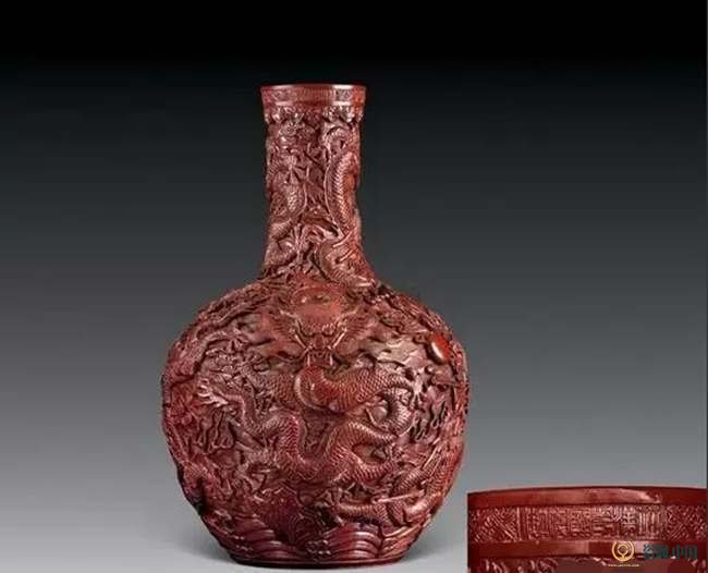 清乾隆 珐琅彩黄地浮雕双龙盖瓶