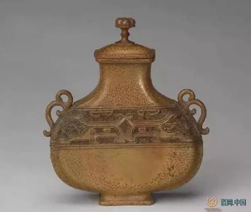 清 文竹贯耳扁瓶 故宫藏