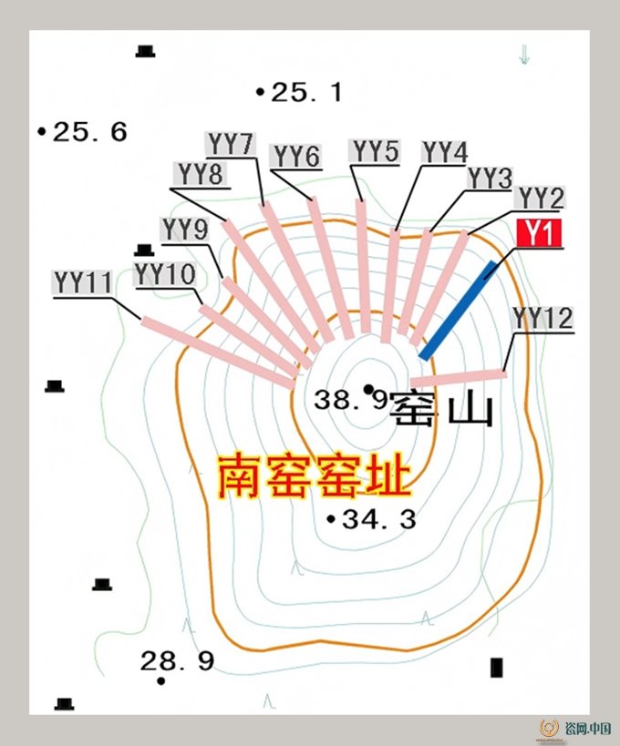 经过调查和勘探,在窑山北部东西200米、南北153米的范围内散布大量窑业遗存,12条龙窑由中心最高点向东、北、西呈扇形分布,长度均超过60米。在面积3万平方米的同一个山头上(窑山)发现如此数量的龙窑,可见当时窑业组织之严密、生产之旺盛,这在全国的窑业遗存都是仅见的。南窑是我国迄今发现龙窑窑炉分布最密集的、布局最有规律的、瓷业生产组织最严密的唐代龙窑窑场。