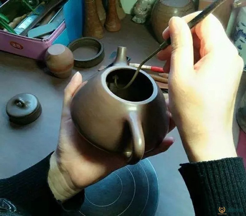 修整壶口,要让盖子正好放进壶口,需非常小心,不能太大或太小